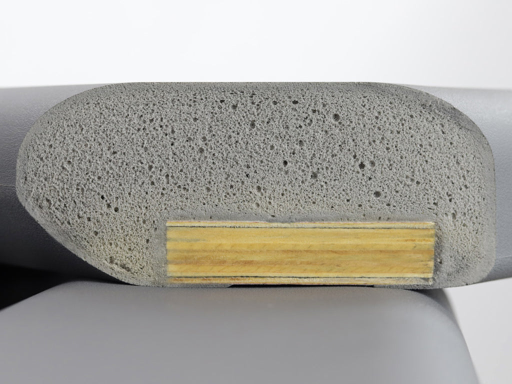 La mousse intégrale est fabriquée à l'aide d'une technologie innovante. Elle est formée d'un noyau en mousse qui se transforme en une surface solide, ressemblant à la peau naturelle. Les plateaux fabriqués à l'aide de ce type de mousse sont sans couture, faciles à désinfecter, agréables au toucher et résistants à : l'abrasion, aux rayons UV et à l'eau.