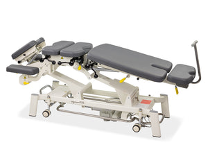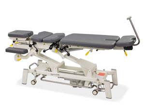 La table stationnaire Upright Chiro Z7 est la table la plus avancée pour la physiothérapie, la thérapie manuelle, l'ostéopathie et les éléments de la chiropractie. Le plateau à sept segments est équipé de systèmes de réglage spéciaux, permettant au thérapeute de travailler avec des parties individuelles du corps du patient. Parmi ceux-ci, on peut distinguer les suivants :