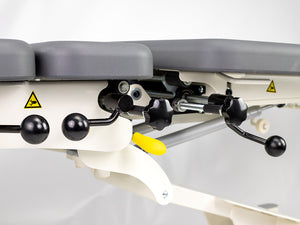 Des leviers de "drop" ergonomiques, avec un système de réglage unique, permettant de soulever le patient dans une section donnée sans avoir besoin de la force du thérapeute