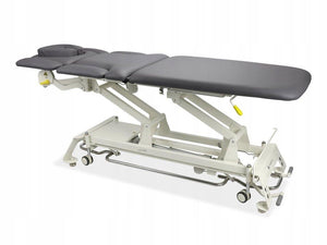 La table de rééducation EVERO X7 est l'une des tables fixes les plus avancées. Le modèle est équipé d'un plateau à 7 segments avec réglage complet, d'un cadre de commande, d'un système mobile et d'un appui-tête avec coussin ERGO. Le coussin spécialement profilé s'adapte parfaitement au visage, offrant au patient un confort maximal.