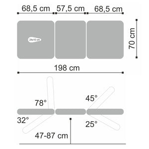 Actionneur hydraulique certifié : le mécanisme de réglage de la hauteur, situé des deux côtés de la table, permet un réglage en douceur de la hauteur dans la plage de 47 à 87 cm, assurant un travail ergonomique pour le thérapeute et un confort pour le patient, sans nécessiter de raccordement au réseau électrique.